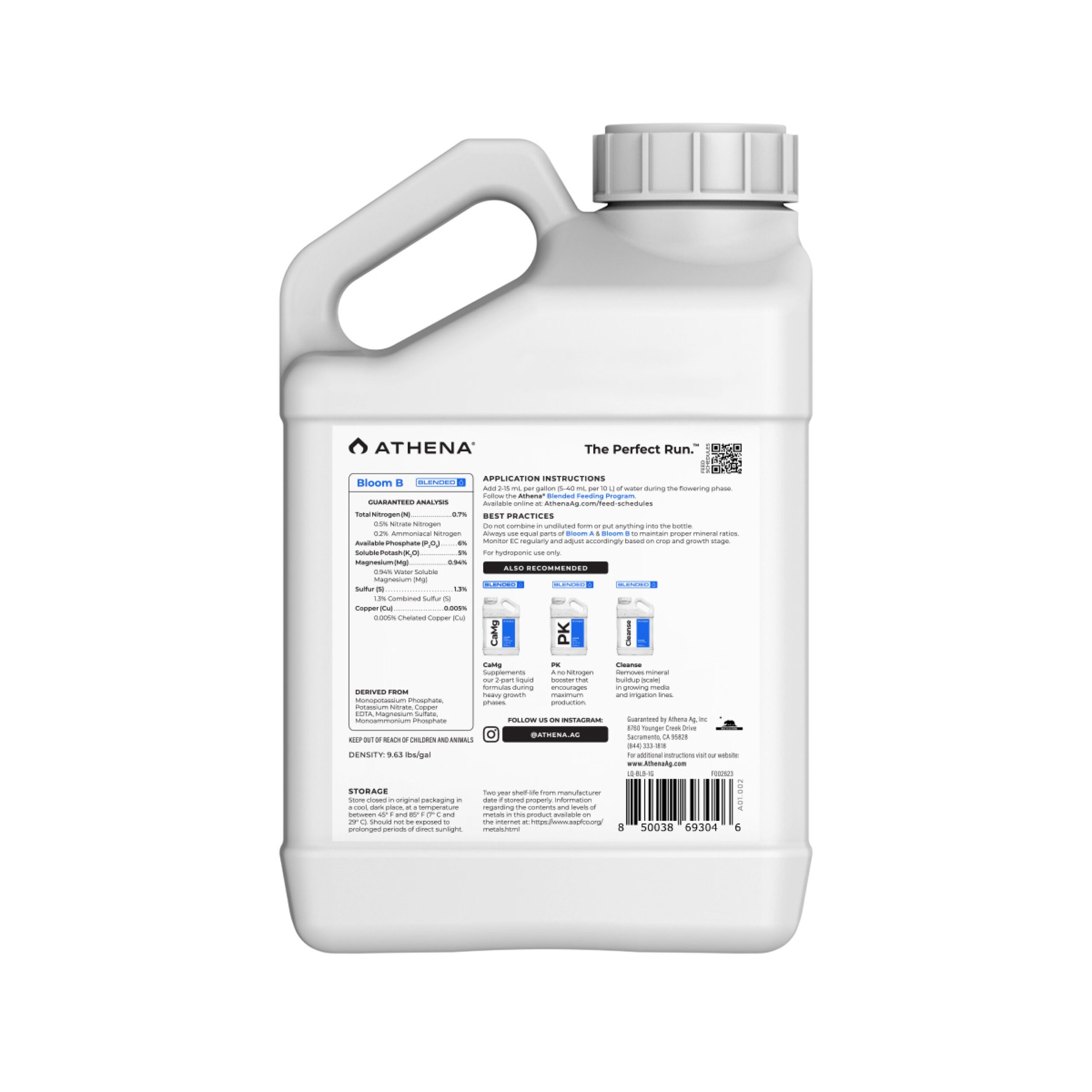 Athena Bloom A+B es una fórmula sencilla y limpia, diseñada exclusivamente para la etapa de floración de plantas que producen flores y frutos. Este kit de dos componentes asegura una nutrición precisa y de alta biodisponibilidad cuando las plantas más lo necesitan.