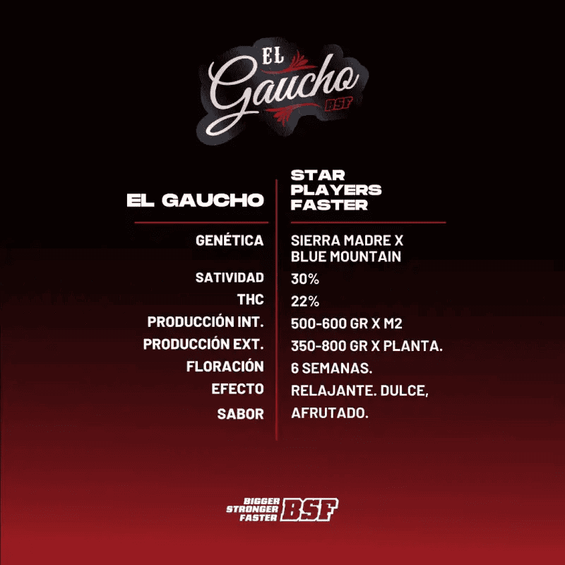 BSF SEEDS te sorprende una vez más con El Gaucho Faster Flowering, una variedad creada tras años de investigación en Sudamérica para satisfacer la necesidad de cosechar genéticas de alta calidad en el menor tiempo posible.