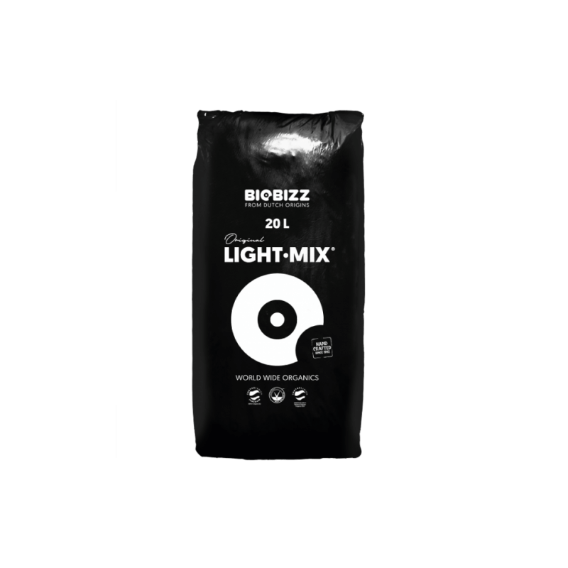 Light Mix de Biobizz es un sustrato 100% orgánico que estimula el crecimiento vigoroso de las plantas, su mezcla sin nutrientes adicionales permite fertilizar con dosis mas altas sin preocuparte por sobre alimentar tus plantas; Además promueve la microactividad del suelo y el rápido desarrollo de raíces.