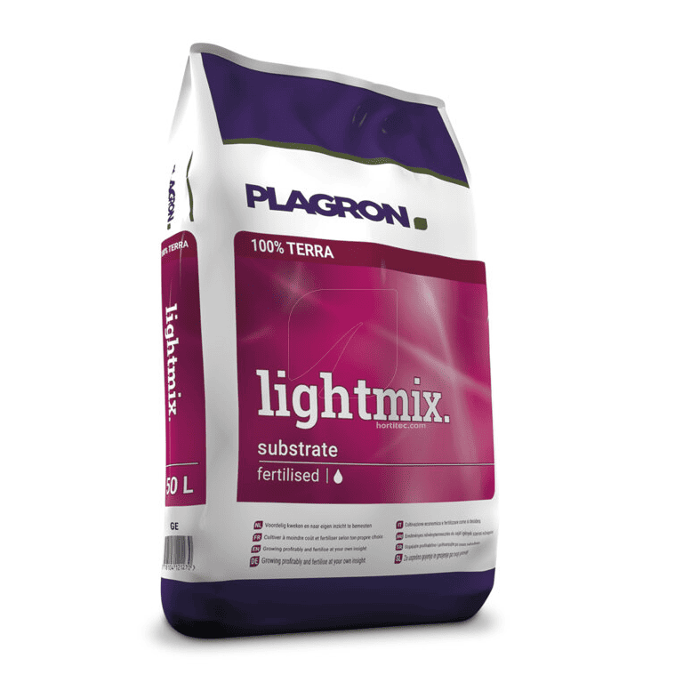 Plagron Light Mix es una tierra suave compuesta con materiales de primera calidad: turba rubia, turba negra, turba fibrosa y una buena cantidad de perlita. Esta composición asegura que la cantidad de oxígeno sea óptima alrededor de las raíces, fomentando un desarrollo radicular fuerte y saludable.